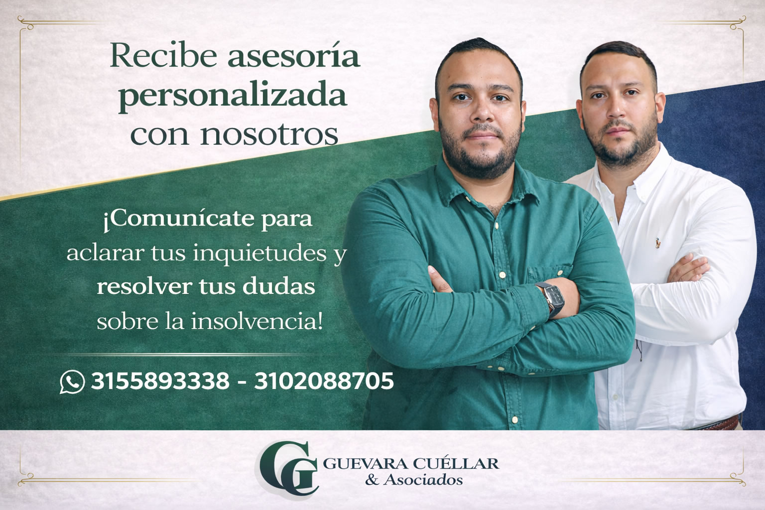 En Guevara Cuellar & Asociados creemos que cada caso es más que un número de radicado; es una historia de vida que merece ser escuchada. No somos prestamistas ni compramos deudas; somos sus aliados legales y financieros estratégicos para que pueda volver a empezar con dignidad.
